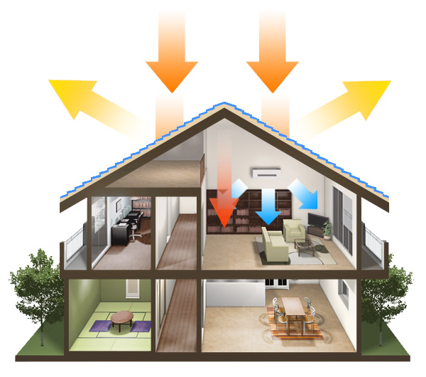 特徴: 屋根や外壁の温度上昇を抑える塗料で、夏の冷房効率UPにも効果があります。