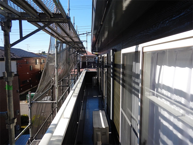 すべての工程が完了した後、施工箇所を細かく確認します。高品質な仕上がりを保証します。 - 足場解体後の検査