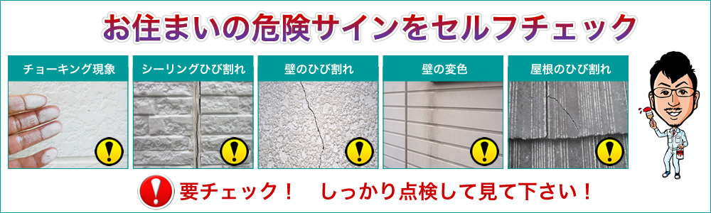 - チェックポイント: 塗膜が剥がれていたり、外壁材が浮いている部分はありませんか?